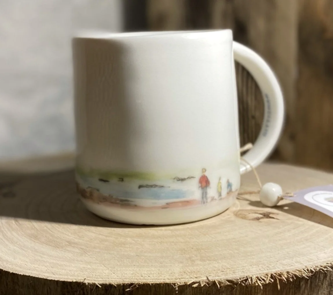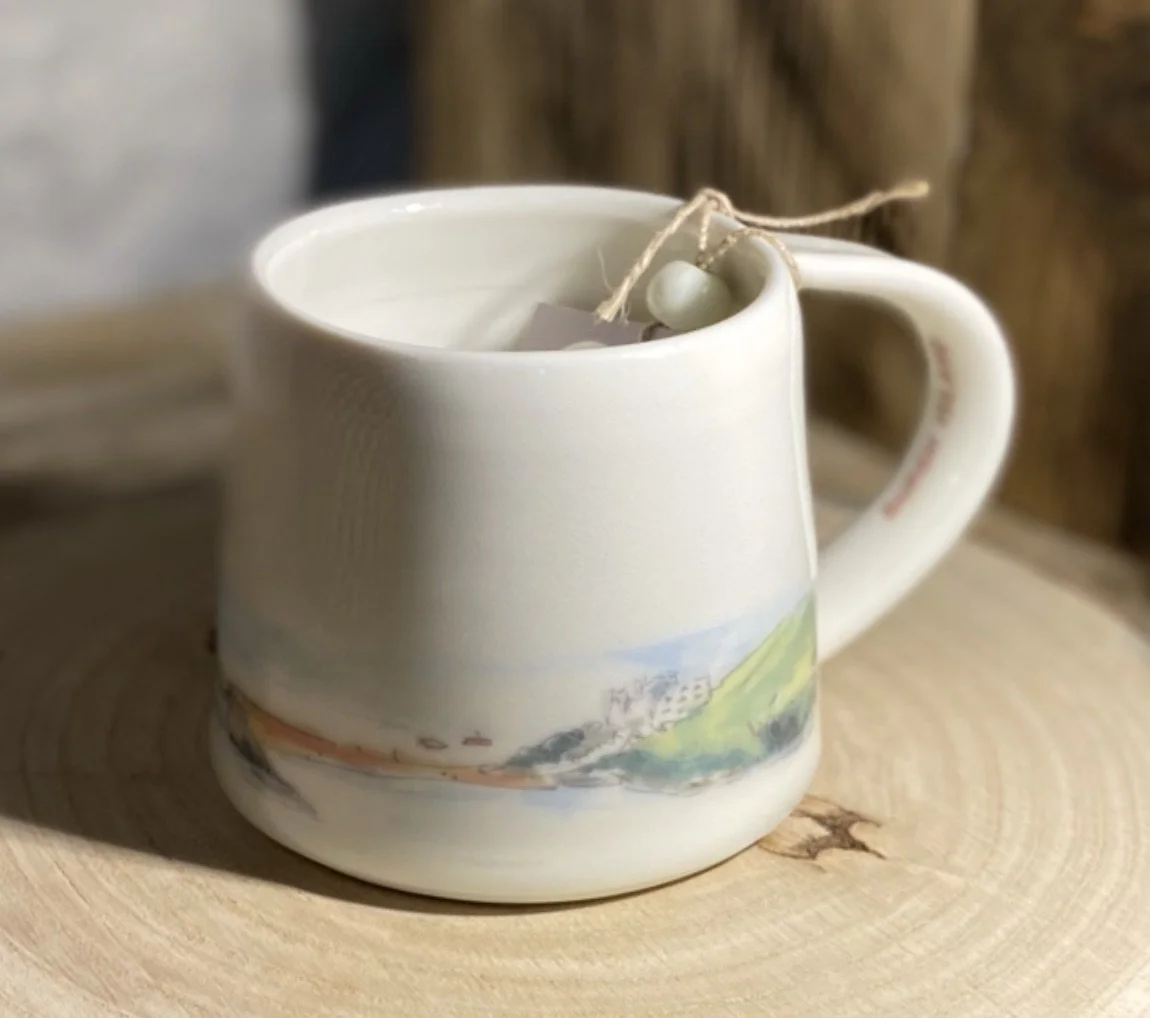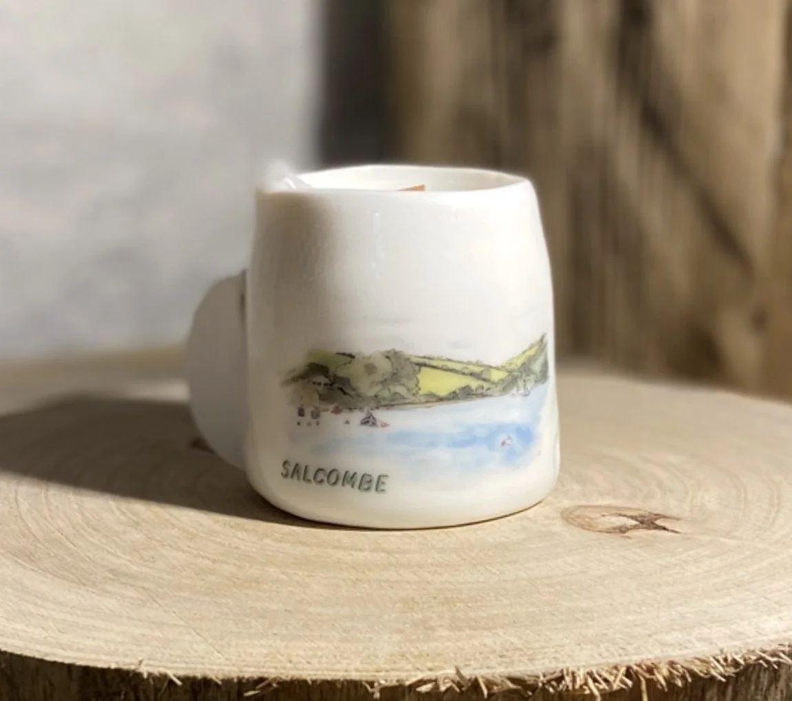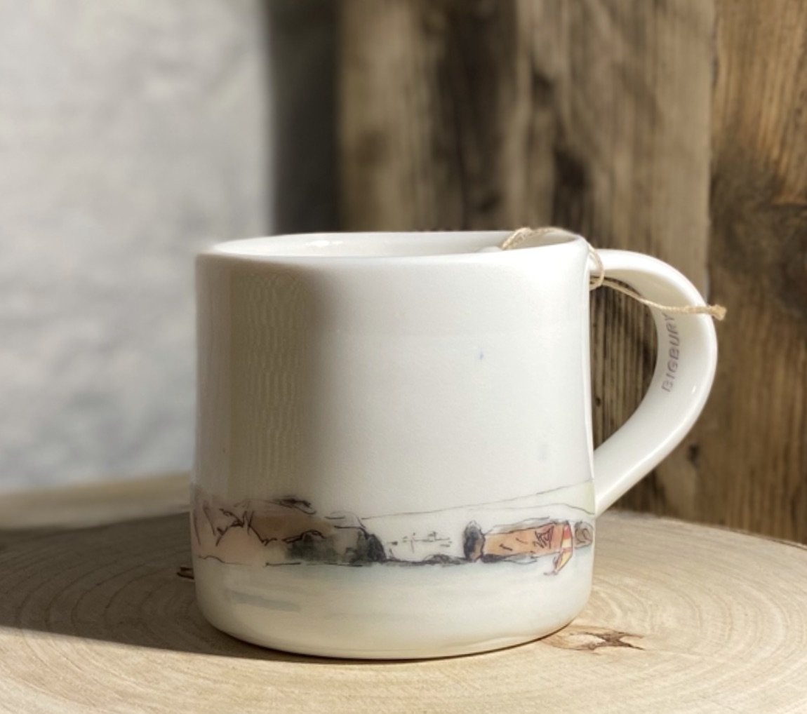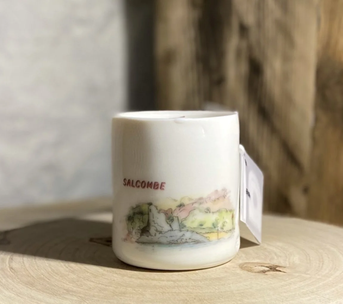 Alison’s work is about creating or renewing memories of good times had in beautiful places and locations. Ceramics and linen all feature images of her original watercolour paintings that have been painted in and around the coastline and moors of her home town of Totnes.