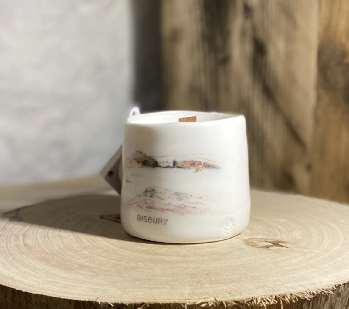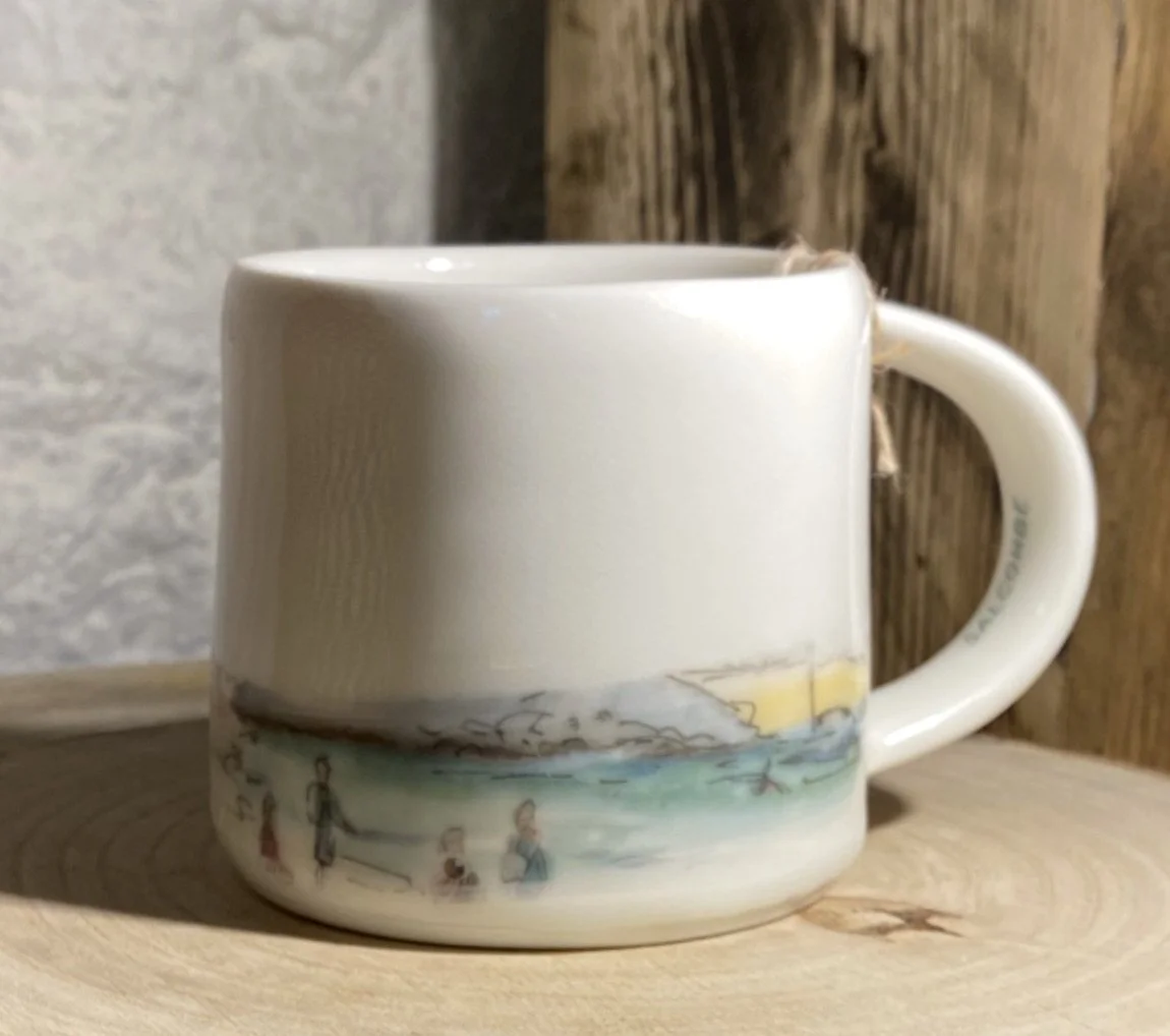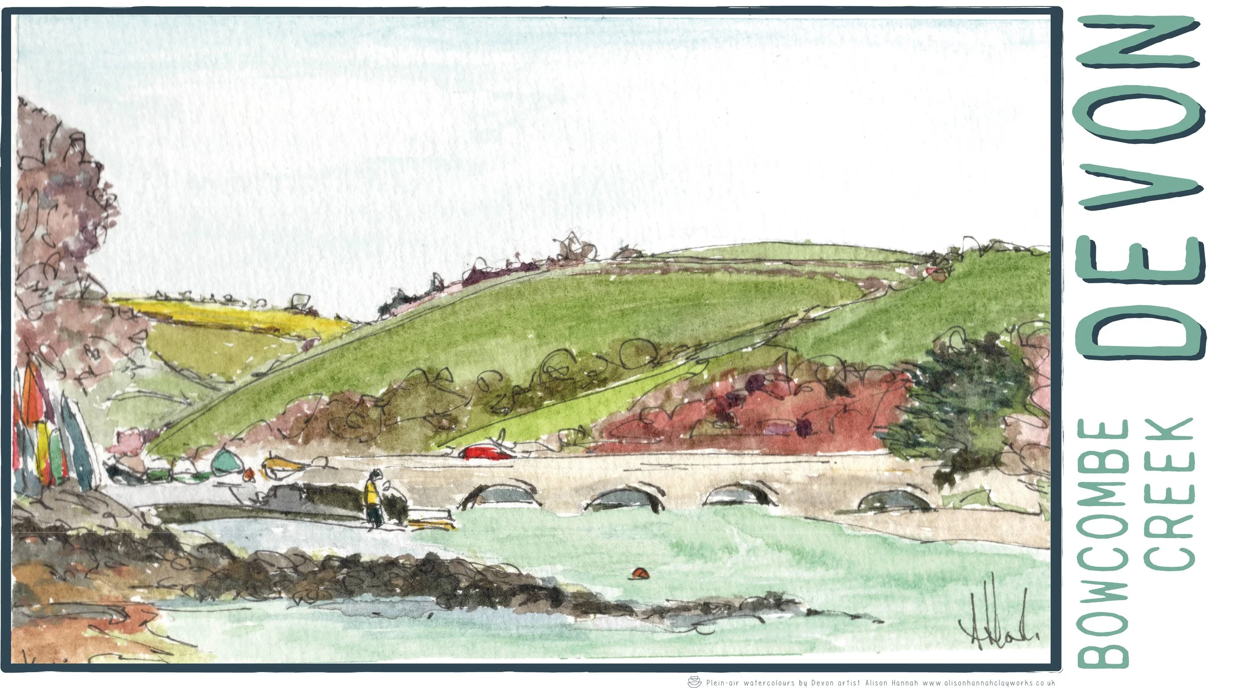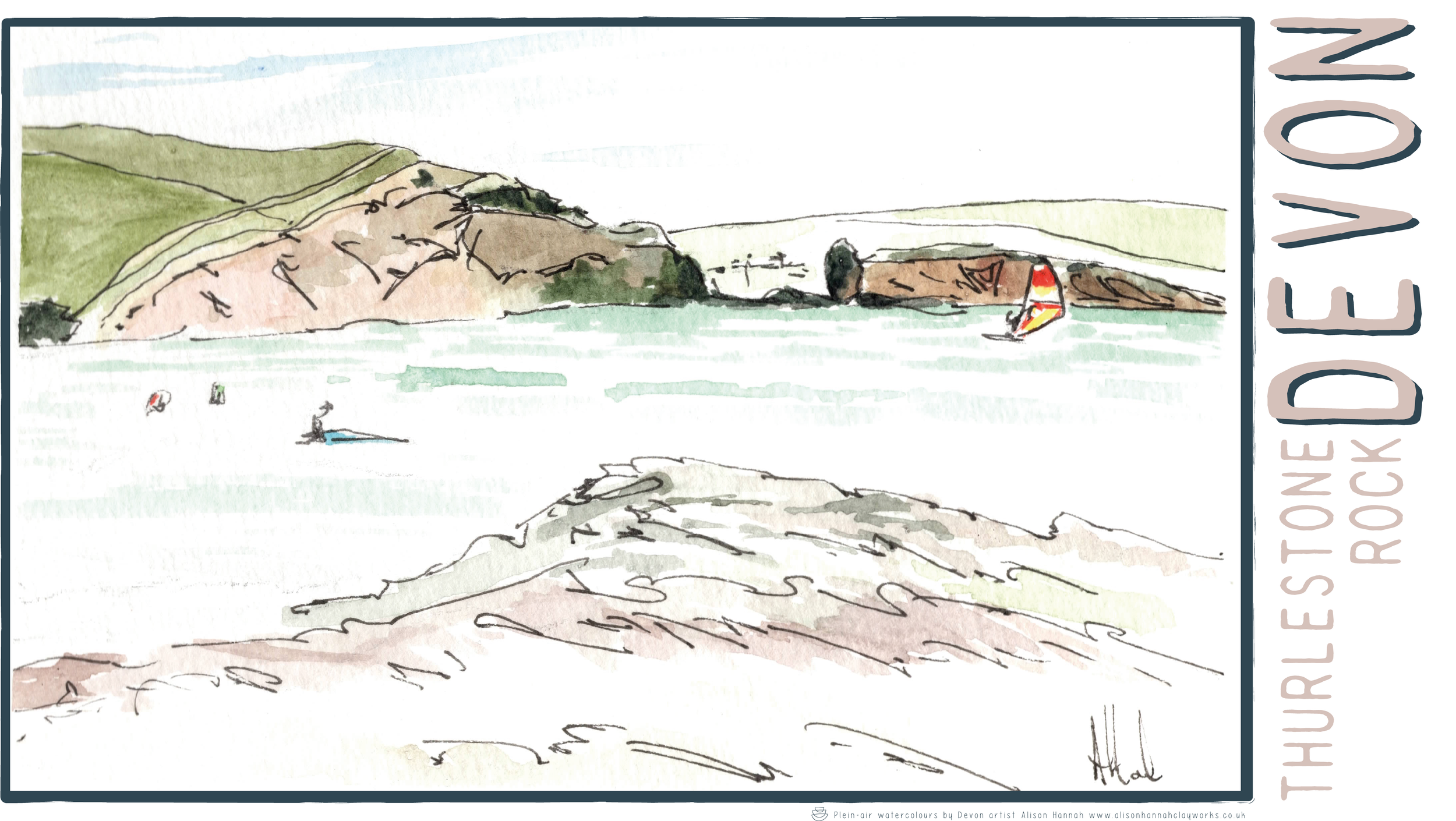 Alison’s work is about creating or renewing memories of good times had in beautiful places and locations. Ceramics and linen all feature images of her original watercolour paintings that have been painted in and around the coastline and moors of her home town of Totnes.